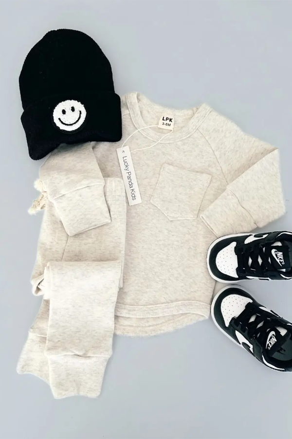 Upgrade your child's lounging game with the Kids Lounge Set in Oatmeal! Made from super soft cotton, this two-piece set is perfect for everyday wear and play. Its gender-neutral design and range of sizes make it a must-have for any child up to 9 years old. Stay stylish and comfy with our sweet and simple design!